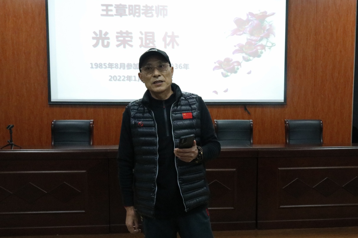 1月7日上午,学院在第一会议室召开全体教职工大会。会上,学院为王章明、郑真两位老师举行简单而隆重的荣休仪式。
