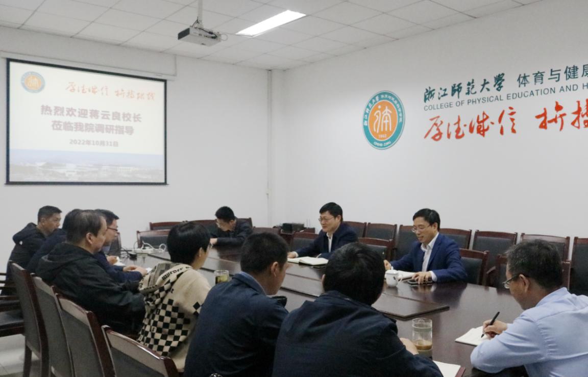 听取汇报后,蒋云良校长深情回忆了当年就读师大上体育课的情景,充分肯定了学院良好的办学传统,对学院当前良好的发展势头表示赞赏,与班子成员就学院发展当前面临的主要任务和主要问题进行了深入的讨论和交流。最后蒋校长对学院下一步发展提出了要求,一是要全力以赴做好新一轮博士点申报工作,以学位点为抓手推动学科平台提升,推动学院跨越式发展;二是要集思广益做好学院社会服务工作,不断增强教职工的获得感和幸福感;三是要组织多方调研,结合学院实际做好急需人才引进工作,确保教师队伍结构合理平衡。
