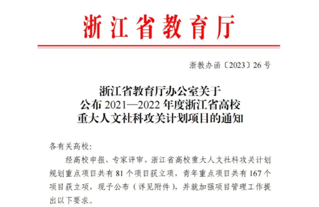据悉,本次浙江省高校重大人文社科攻关计划规划重点项目共有81个项目获立项,今年会有5个规划重点项目立项。
