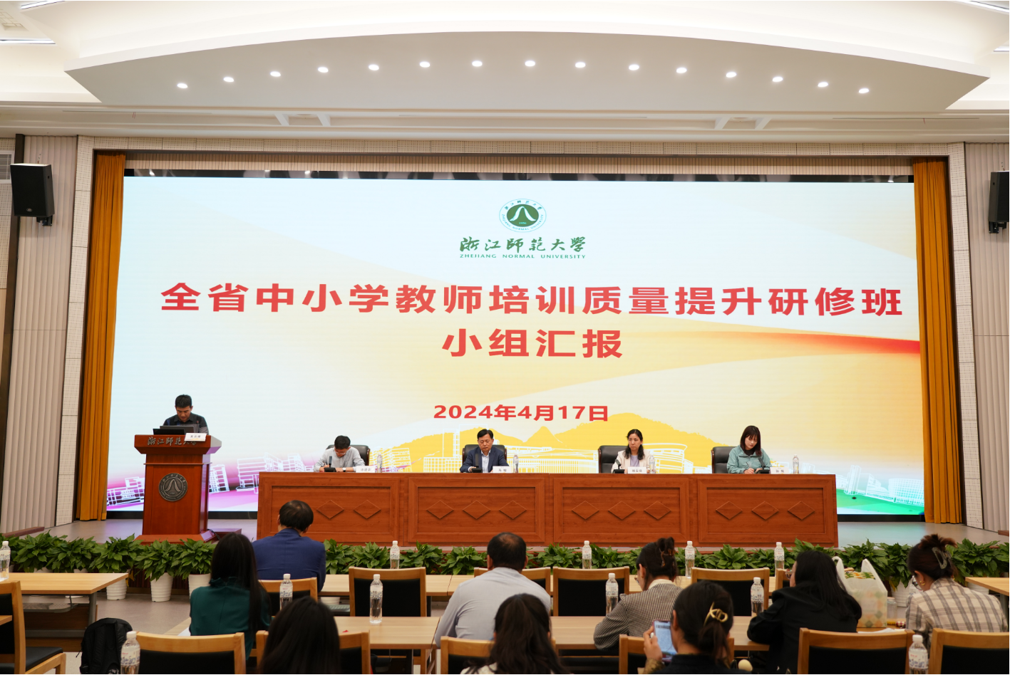 本次培训的结业仪式采用研讨小组分组汇报的形式进行,浙江省教育厅教师工作处三级调研员马骏、浙江省师训干训中心副主任姚安娣、浙江省教师教育质量监控中心副主任徐建华、浙江省教育技术中心应用培训部孙帆出席汇报仪式。马骏调研员代表教育厅对本次研修班取得的成果表示高度肯定,并从正确认识教师培训工作、严格落实教师培训有关要求、积极创新教师培训模式等三个方面提出要求,并希望各省级培训机构在已有基础上再接再厉,继续为中小学教师专业发展提供更多支持。