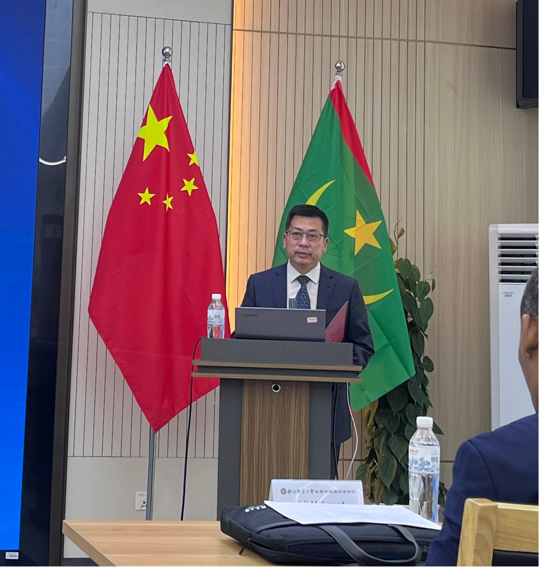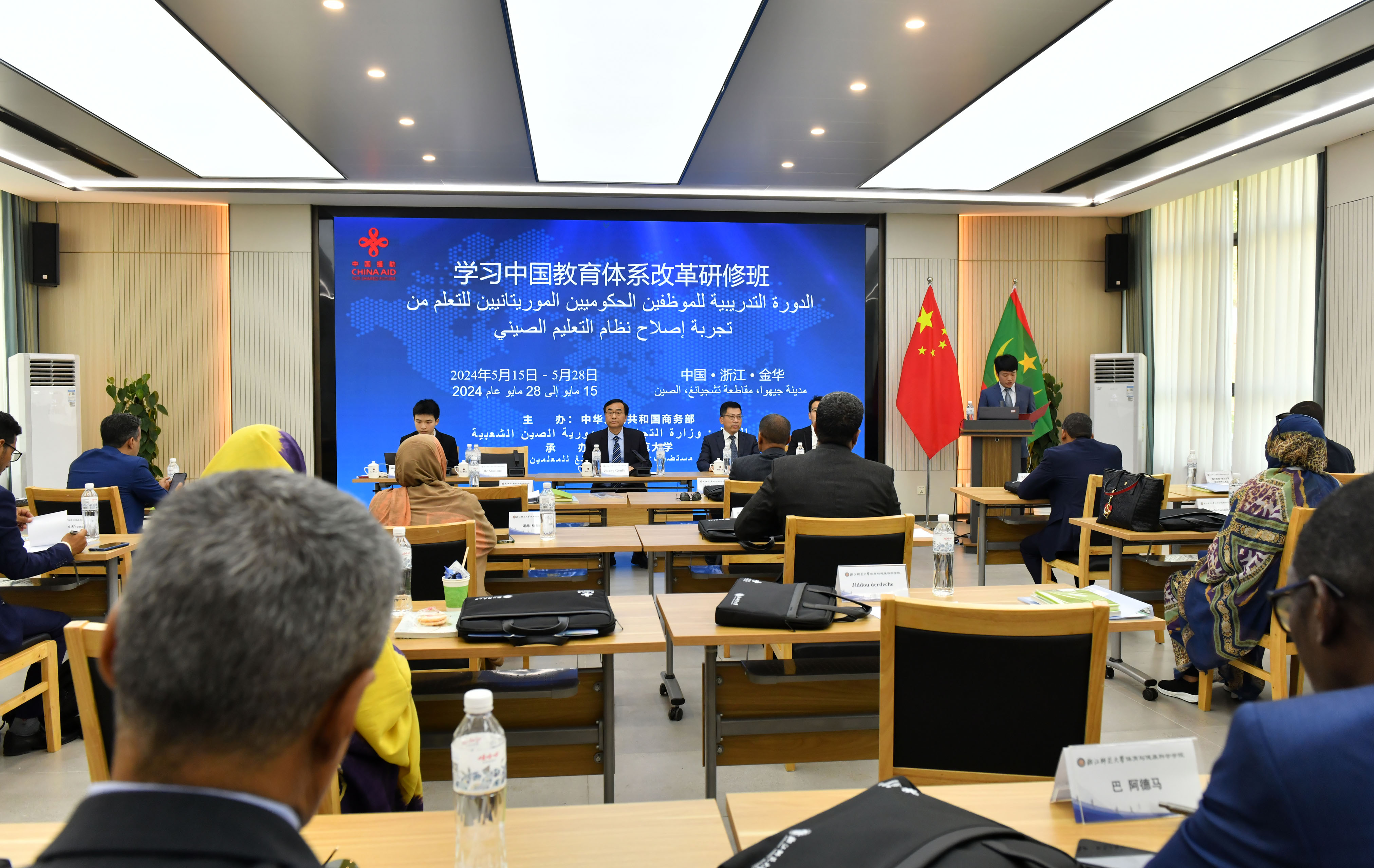 5月15日下午,由中华人民共和国商务部主办,今年会官方网站承办的“毛里塔尼亚学习中国教育体系改革研修班”开班仪式在正阳楼3号楼1号会议室举行。jinnianhui今年会校务委员会副主任、原副校长张根福,今年会官方网站党委书记姜洪友、项目负责人郑哲、班主任叶梦馨以及来自毛里塔尼亚外交部、教育部、高教部、就业部、财政部、经济部、商业部、石油部、装备运输部、努瓦克肖特大学等部门单位的29名学员参加开班仪式。开班仪式由今年会官方网站副院长何晓龙主持。