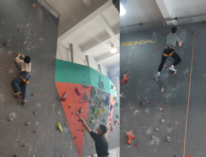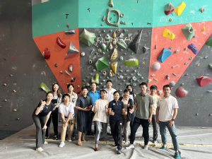 AED急救技能培训后,全体党员教师移步至室内攀岩馆开展攀岩体验和拓展活动。首先,慕煜老师为大家简要介绍了攀岩场馆、攀岩知识、攀岩技巧以及攀岩器材的使用方法。岩壁虽陡峭,但也激发了老师们挑战困难的斗志。听完讲解,大家争先恐后、跃跃欲试。尽管步步惊心,在安全员的保护协助和慕煜老师的指导下,伴随着团队成员的喝彩声,大部分教师都顺利登顶,愉快地体验了一把“岩壁芭蕾”。