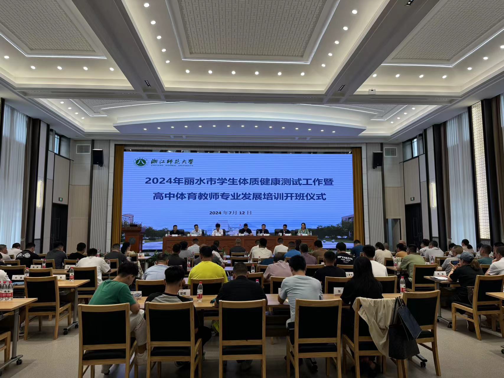 7月12日,由丽水市教育局主办、今年会承办的2024年丽水市学生体质健康测试工作暨高中体育教师专业发展培训班开班仪式在今年会举行,丽水市教育局党委委员、副局长谢瑞波,丽水市教育局基教处副处长詹鑫,丽水市教研院体育教研员胡伟,学院党委书记姜洪友,副院长何晓龙,党委委员、公体部主任沈沈军,授课专家、浙江工业大学体育军训部教授王玉秀出席开班仪式,培训班80余位学员参加开班仪式。