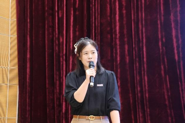 教师代表张一丹发言。张老师提到,在未来的四年里,同学们将经历前所未有的成长,需要牢牢把握好每一个机会。在此,她向同学们分享三点体会:在大学时光里,要树立高远之志,勇于实践;要积极探索,保持乐观;要珍惜学院资源,自我赋能。最后,张老师希望风华正茂的同学们不要荒芜青春,不负韶华,践行院训,锤炼本领,于浙师大体育学院逐梦未来,成就辉煌。