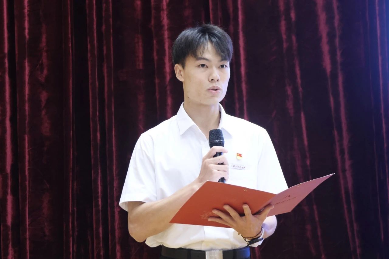 2023级研究生唐志铭作为老生代表发言。他回顾了自己与师大的八年缘分,从初入大学的迷茫到军旅生涯的磨砺,再到回归校园后的刻苦学习与成长。他分享了军旅生活带来的宝贵经验和人生感悟,强调了高眼界、大格局的重要性。回校后,他凭借坚韧不拔的精神,在学业和体育上均取得了优异成绩,并积极参与校园活动,担任多职。唐志铭学长鼓励2024级新生们珍惜大学时光,发掘自身潜力,让青春更加绚烂。最后,他引用习主席的话,寄语新生们,“青春孕育希望,青年创造未来”,期望大家在浙师体院书写精彩篇章。