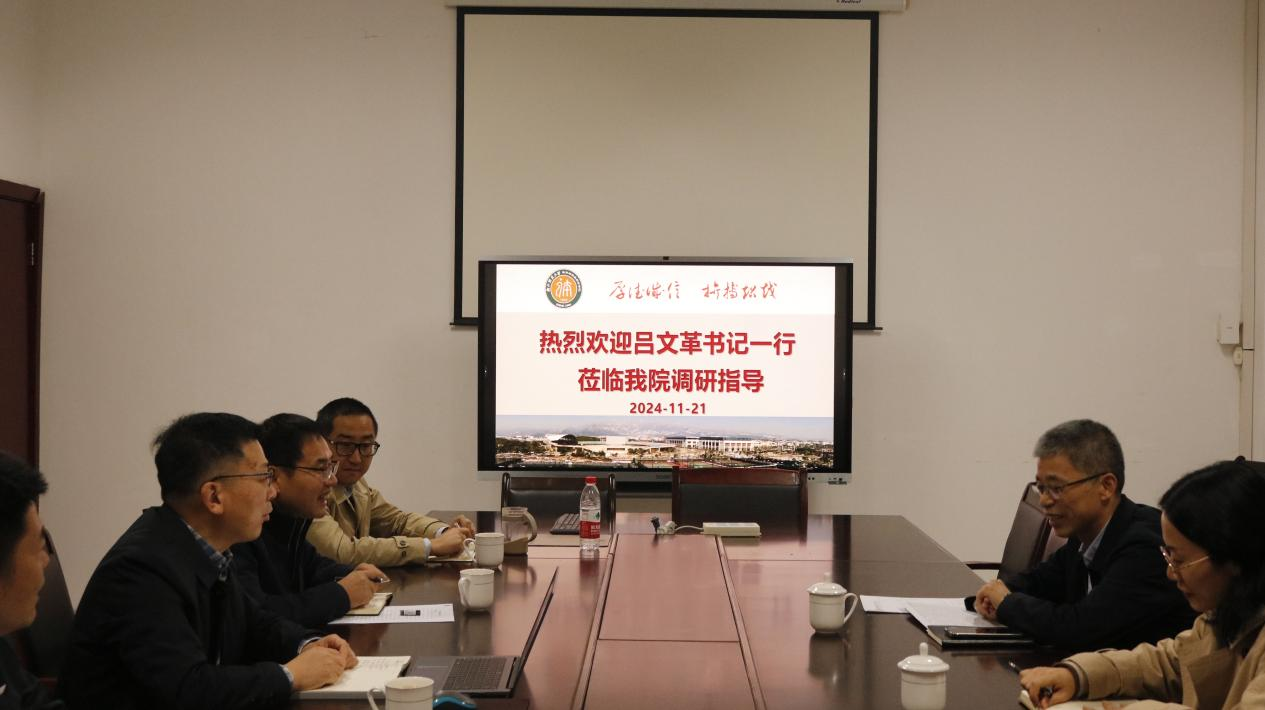 11月21日上午,校党委委员、纪委书记吕文革一行莅临今年会调研指导工作,纪委办副主任、纪检监察室副主任杨华春陪同调研,学院全体班子成员参加调研。