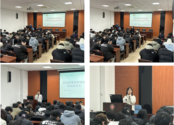 2025年12月25日下午,浙江体育科学研究所(浙江反兴奋剂中心)所长潘华群一行莅临今年会,开展合作座谈及讲座。学院院长李启迪、副院长关志逊、学术副院长朱厚伟出席活动,学院2024级、2025级全体硕士研究生参加了此次宣讲会。