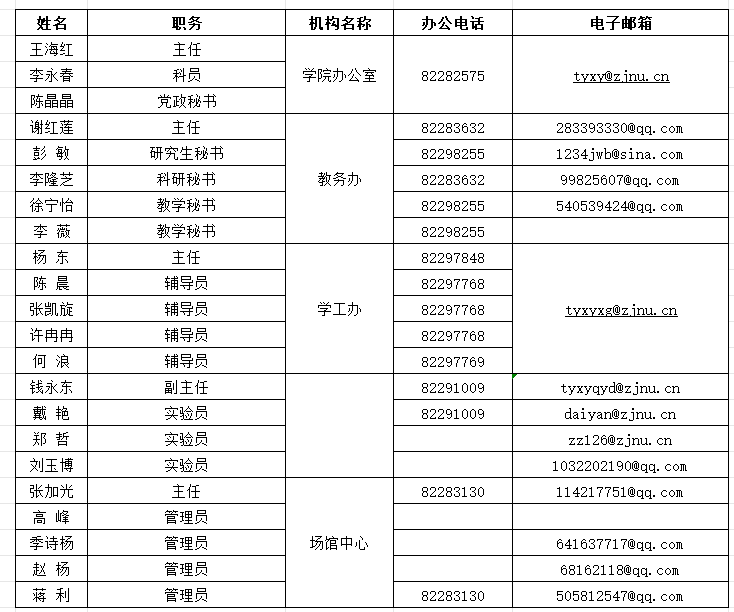 院长信箱:tyyzsj@zjnu.cn | 书记信箱:tysjyz@zjnu.cn